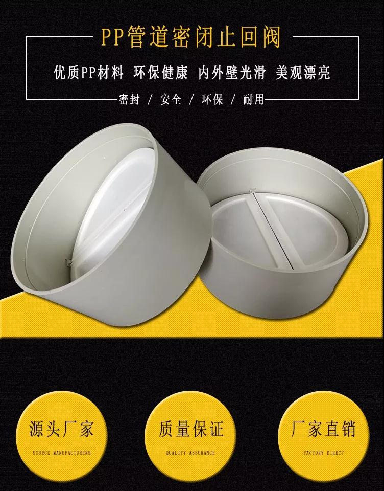 PP止回閥用于控制風管內氣流 單向流動,未使用時受重力影響自動關閉;取代傳統的銅質.鐵質止回閥,不生銹,安裝方便.大大降低生產使用成本.
